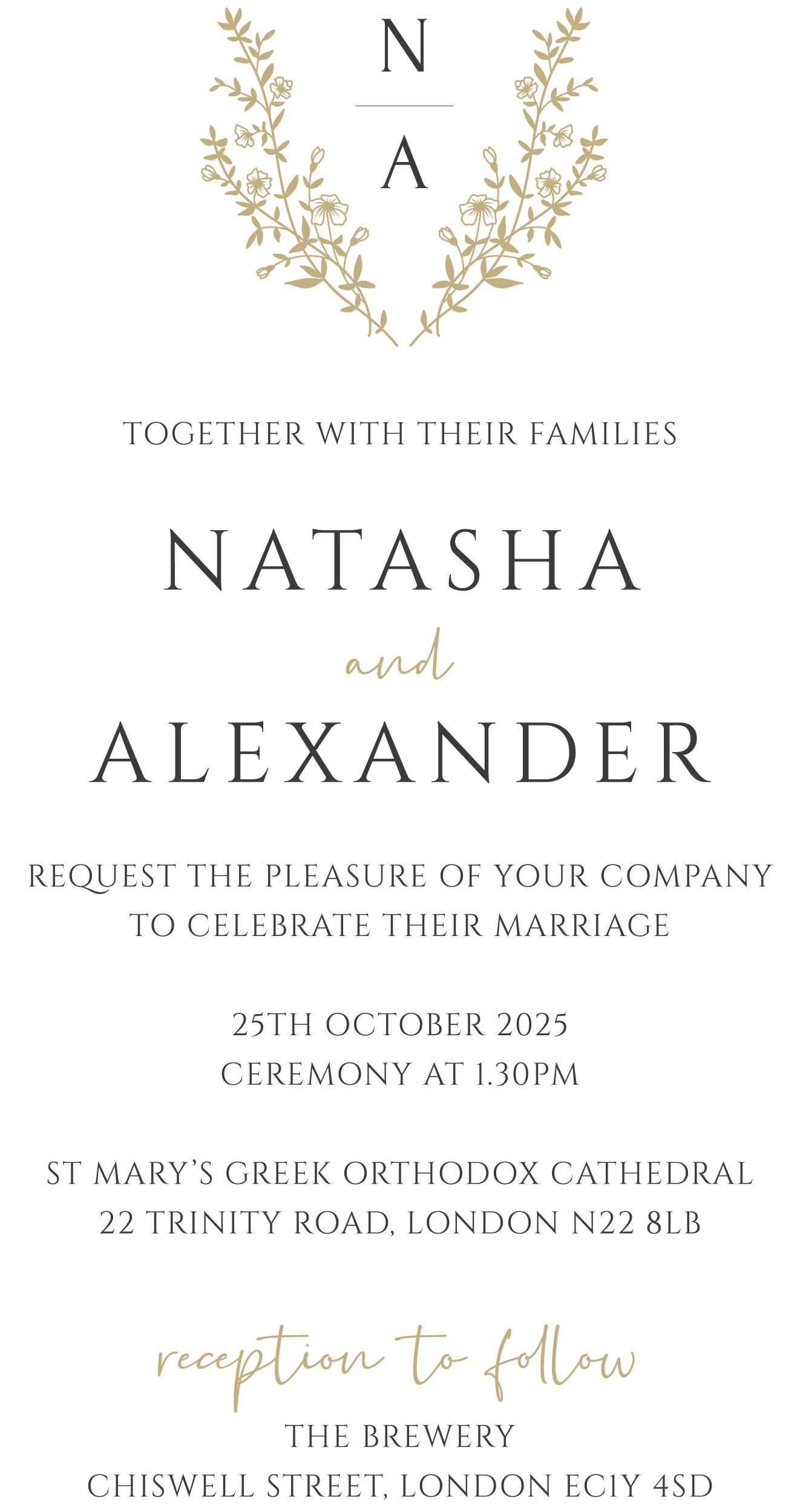 Please note that the location of the reception is in the congestion charge zone.